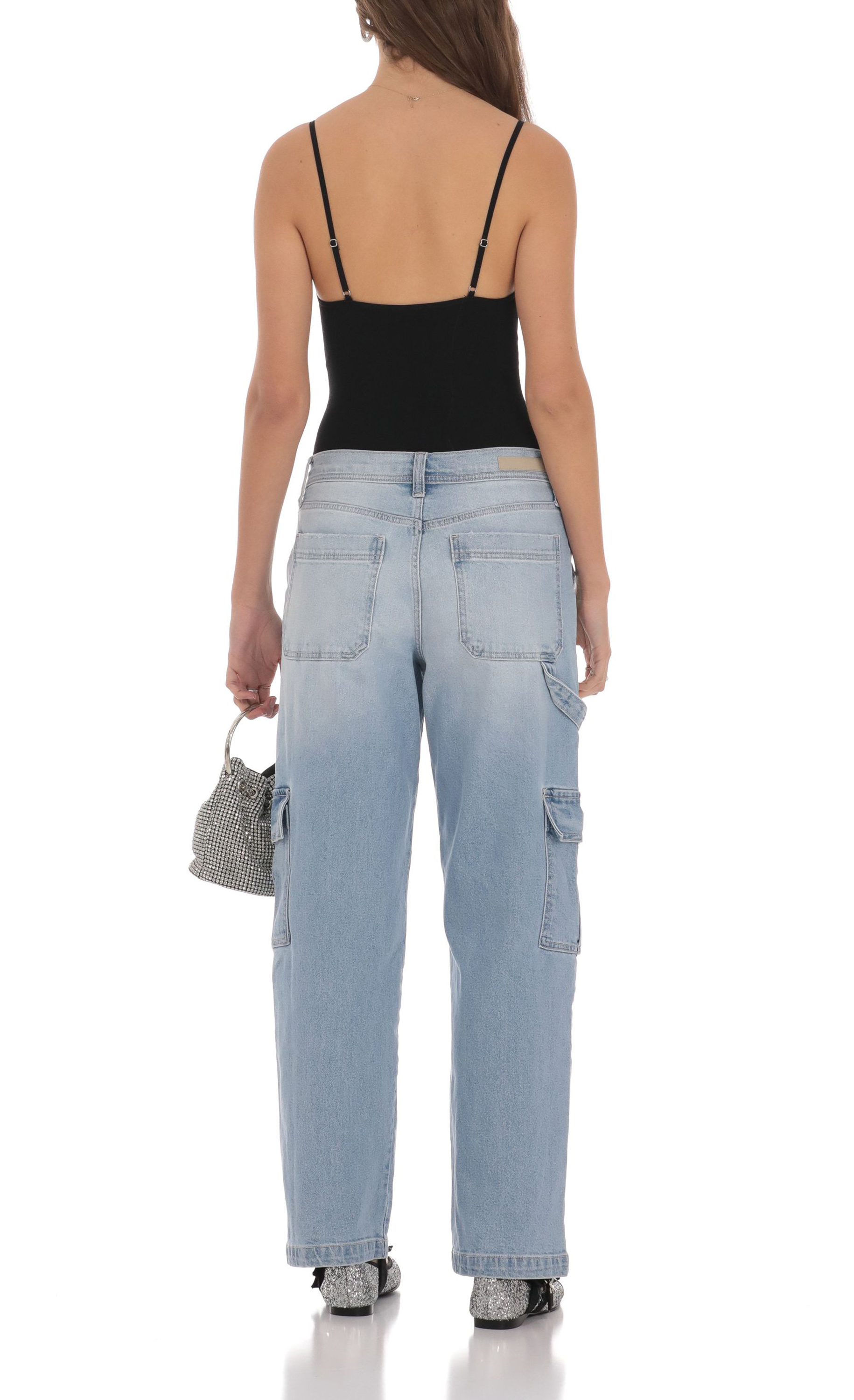Cargo Wide Leg Jeans in Faded Denim 97463