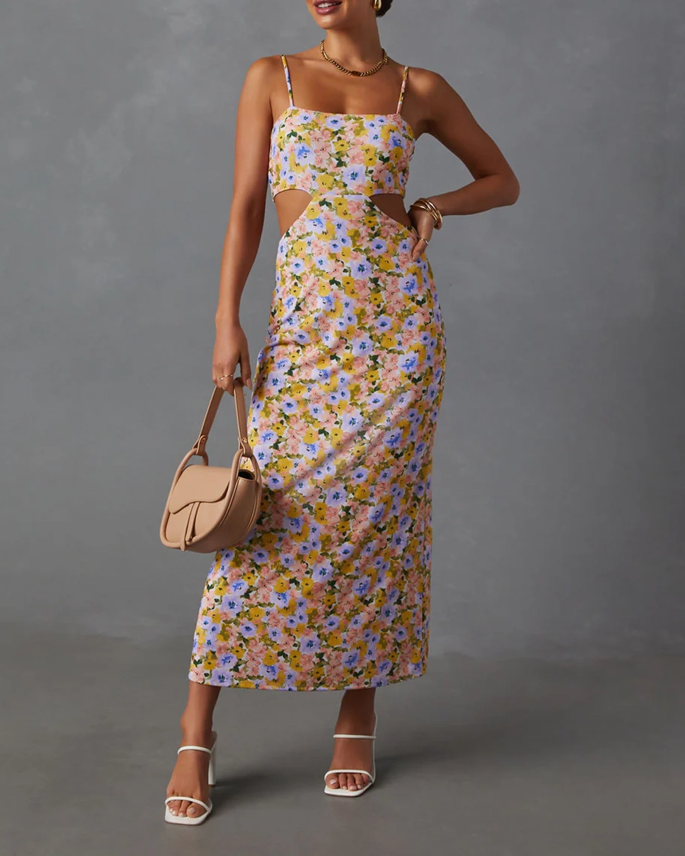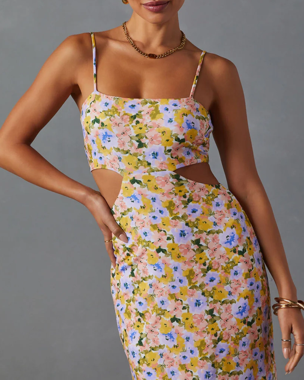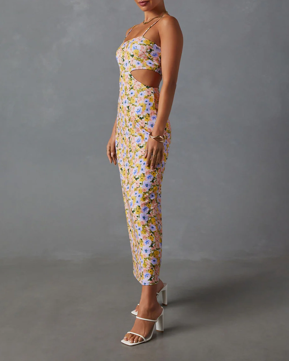Sleeveless Side Cutout Floral Print Midi Dress 97258