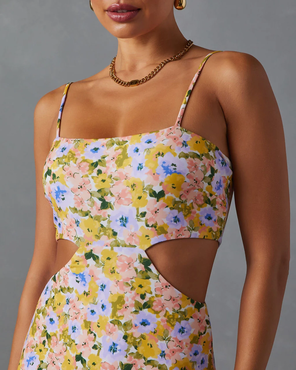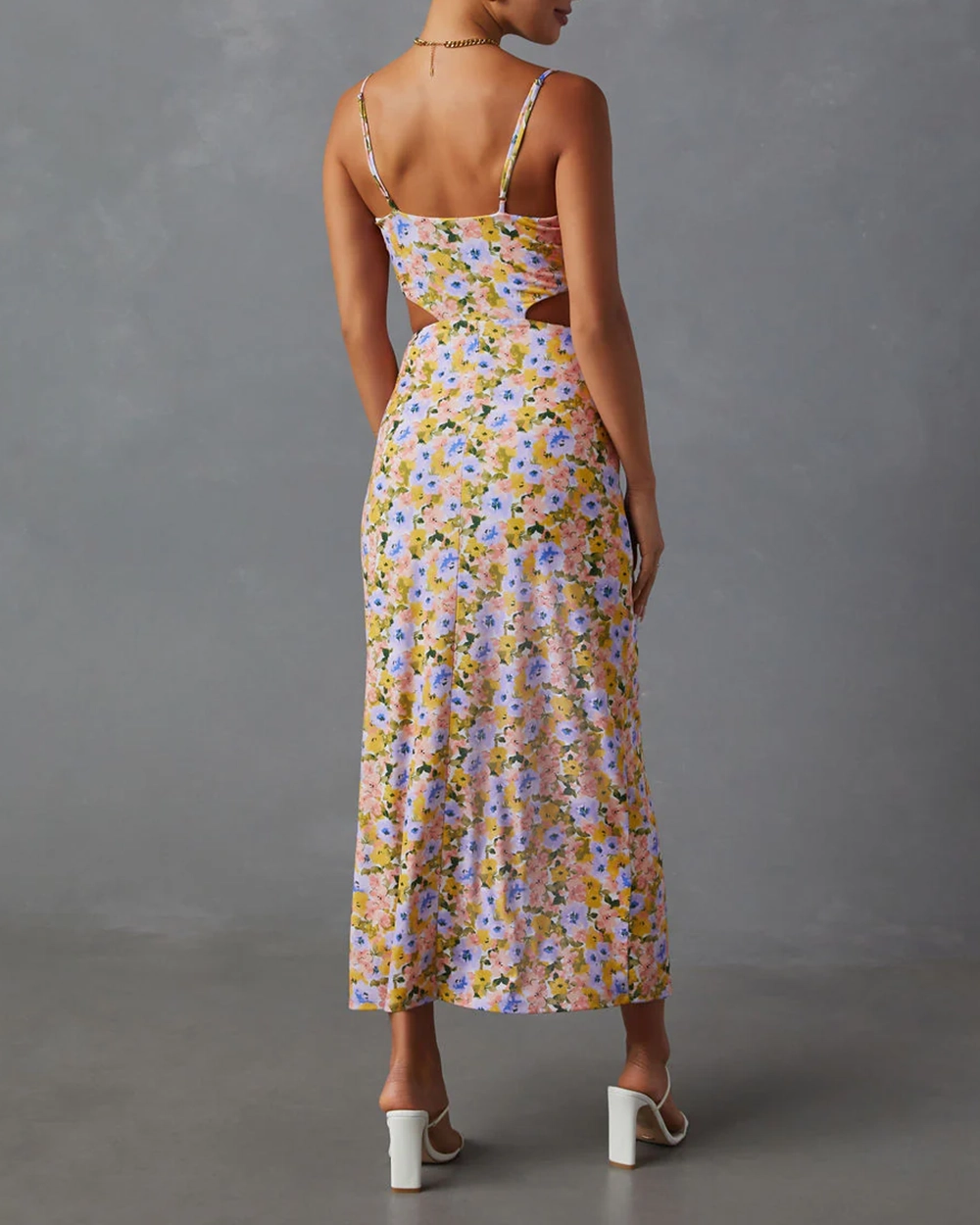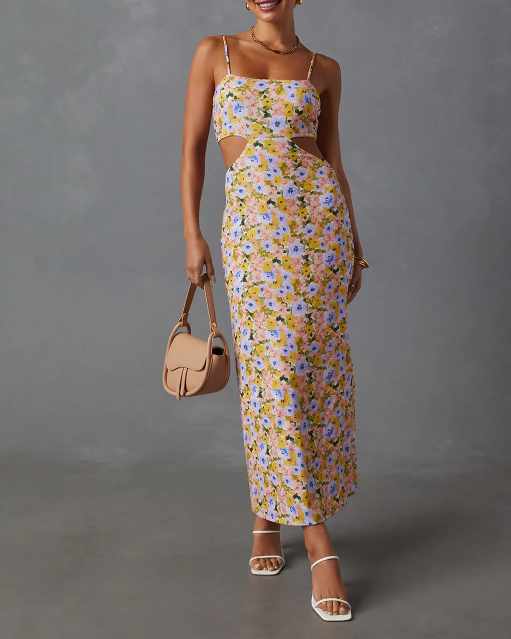 Sleeveless Side Cutout Floral Print Midi Dress 97258